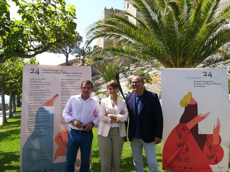 La presentació de la programació d’enguany l’han realitzat la directora adjunta de Música i Cultura Popular de l’Institut Valencià de Cultura, Marga Landete; l’alcalde de Peníscola, Andrés Martínez; i el director artístic del festival, Leonardo Marqués.