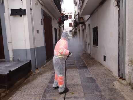 Peníscola segueix amb els treballs de desinfecció de vials, accessos a establiments i espais públics d'alta concurrència