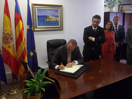 El president de la Generalitat, Alberto Fabra, visitar l’Ajuntament i va firmar en el seu llibre d’honor, i va animar l’alcalde i els regidors a treballar per sortir junts de la crisi.