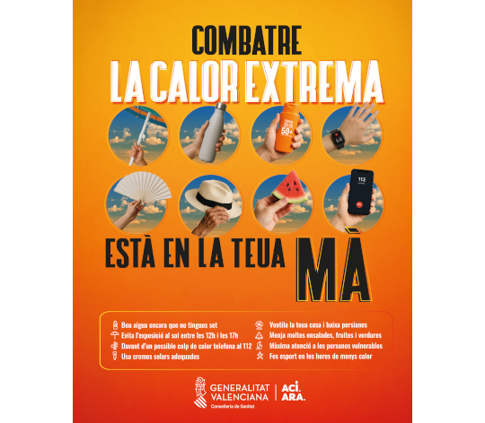 • Pare atenció als símptomes del colp de calor (T.ª corporal elevada, sudoració, marejos, confusió…).