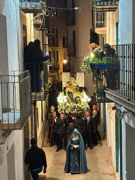 El sonido de la percusión y los pasos se adueñaron de la ciudad antigua ayer a partir de las diez de la noche, hora en la que la procesión de Jueves Santo devolvía a las calles empedradas de la ciudadela de Peñíscola los pasos de la Semana Santa. Con miles de visitantes como espectadores de excepción, centenares de devotos formaron parte de este encuentro con la tradición y la devoción en la Ciudad en el Mar. La próxima cita será esta misma noche, con la celebración de la procesión del Viernes Santo, jornada que ya arranca por la mañana con la celebración del vía crucis. El Sábado Santo se llevará a cabo una procesión con la especial participación de la Associació de Bombos i Tabals de Peníscola, "Sones de Pasión". El Domingo de Resurrección se celebrará la emotiva Procesión del Encuentro por el núcleo histórico y la solemne misa. Volver al listado de noticias » »