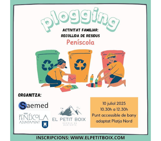 El plogging és la pràctica que combina l'exercici a l'aire lliure amb la recollida de residus. En altres paraules, es tracta d'aprofitar qualsevol activitat física a l'aire lliure per a la recollida dels desaprofitaments que es troben a les platges, les muntanyes o les mateixes ciutats. A l'inici de l'activitat s'explicarà el funcionament del plogging i en acabar s'analitzaran els residus trobats i s'explicarà el problema que suposen els plàstics i microplàstics en l'ecosistema