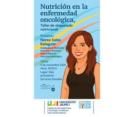 - Ponent: Nerea Sales Balaguer, graduada en Nutrició Humana i dietètica especialista en Nutrició Oncològica