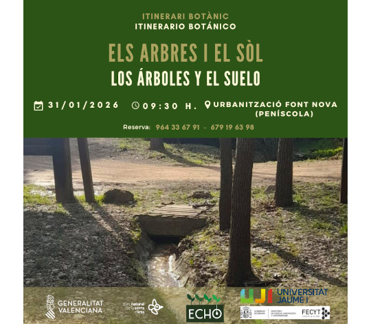 Per a celebrar el Dia de l'Arbre farem un itinerari per l'interior de la Serra d’Irta en el qual veurem com ha evolucionat la vegetació al llarg del temps i coneixerem les espècies d'arbres més representatives del parc natural. En arribar al Mas del Senyor farem un mostreig en què recollirem diversos indicadors de la qualitat de sòl entre totes les persones participants i reflexionarem sobre la nostra relació amb el sòl. Aquest mostreig forma part del projecte ECHO, un projecte de ciència ciutadana sobre la qualitat del sòl a tota Europa, i, del qual, l'UJI és una entitat ambaixadora.