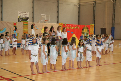 Los alumnos del CEIP Jaime Sanz de Peñíscola han celebrado, esta mañana, en el Pabellón Polideportivo de Peñíscola la fiesta de final de curso. Disfrazados de egipcios, hawaianos y árabes, los niños han llevado a cabo la representación de tres bailes que les han transportado al antiguo Egipto, las islas de la Polinesia y el norte de África. Una fiesta muy emotiva para padres y familiares con la que se despiden del año escolar y queda inaugurado el verano para ellos.