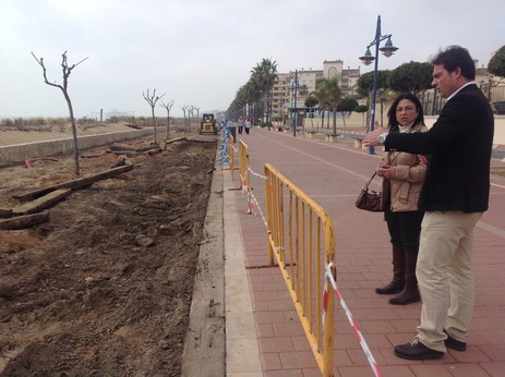 La Regidoria de Serveis de l’Ajuntament de Peníscola està substituint les antigues travesses de tren de l’últim tram del Passeig Marítim a causa del deteriorament, “concretament, 300 metres enfront de l’Hotel Peñíscola Plaza Suites” ha detallat la regidora de l’àrea, Lupe Roig, que ha supervisat l’inici dels treballs amb l’alcalde, Andrés Martínez. Es tracta de l’eliminació de les travesses de fusta i la millora d’aquest tram contigu al passeig, amb formigó imprés i onze escocells per als onze exemplars de tamarinde que hi ha en aquest espai. La regidora ha detallat que el consistori inverteix en aquesta actuació 12.000€ i ha confirmat amb l’empresa la previsió per a l’acabament en les pròximes setmanes.