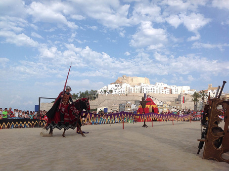 La platja Nord de Peníscola ha viscut aquesta vesprada un torneig medieval de cavallers que pugnaven per l’honor dels papes del Cisma de l’Església d’Orient i Occident. Un espectacle que ha conquistat milers de turistes que s’han apropat a la platja i al passeig marítim per poder gaudir d’aquesta justa de sis cavallers inscrita dins de la programació que ha transportat la ciutat al segle XV.