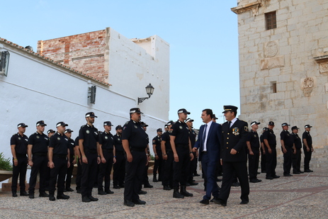 La Policia Local de Peníscola ha celebrat avui la festivitat del seu patró, Sant Miquel arcàngel, amb una missa en l’ermita de la patrona de la ciutat, la Mare de Déu de l’Ermitana. Els 50 membres del cos local de policia que han participat en la celebració han format en la plaça d’accés a l’ermita per a la salutació oficials, que ha protagonitzat l’alcalde, Andrés Martínez, i el cap de la Policia Local, Antonio Morejón, prèviament a l’ofici religiós. L’alcalde ha destacat la important tasca dels agents i ha agraït la seua implicació, ja que ha identificat al voltant de 6000 atencions realitzades en el que va d’any, de les quals un total de 2000 han sigut emergències ateses per avisos al telèfon del reté policial.