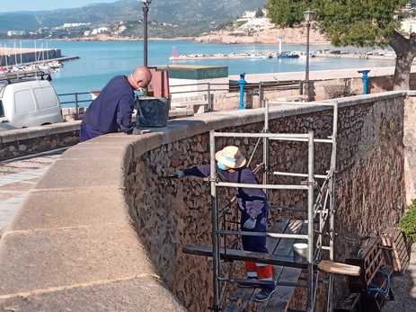 Continúan los trabajos de reparación del muro junto al Bufador en Peñíscola