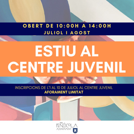 Un any més, des de les regidories de Benestar Social i Joventut de l'Ajuntament de Peníscola s'ha programat "l'Estiu al Centre Juvenil", una activitat estival dirigida als més joves del municipi que tindrà lloc els mesos de juliol i agost en l'Edifici Sociocultural.