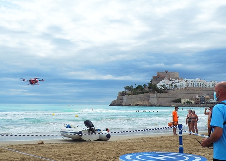 El dron con inteligencia artificial con el que cuenta el dispositivo de seguridad en playas del Ayuntamiento de Peñíscola confirma la alta capacidad de carga de las playas urbanas de la localidad.