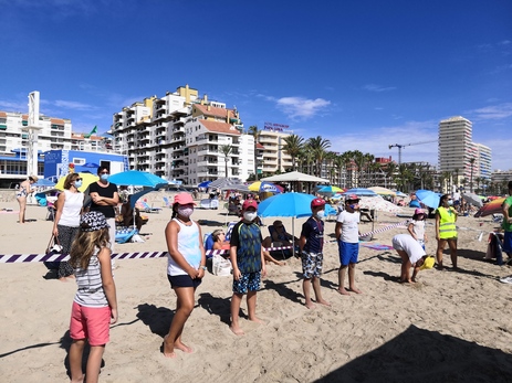 Els i les alumnes de L'Escola d'Estiu de Peníscola visiten el dispositiu de salvament de la platja Nord