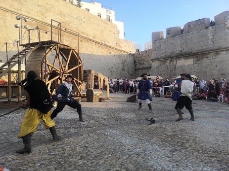 Aquesta vesprada s'ha dut a terme la primera performance en la plaça de Bous sota la temàtica "Aventures i pirates". Amb l'escenari de rodatge decorat, La rueda del infierno ha mostrat als espectadors com es desenvolupa un rodatge en viu.