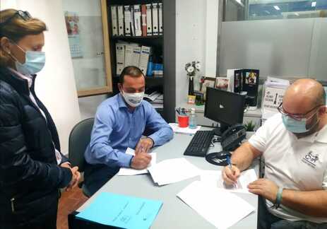El alcalde de Peñíscola, Andrés Martínez, ha firmado hoy, junto con la Asociación de Discapacitados Físicos Cocemfe Maestrat, el convenio de colaboración por el que el Ayuntamiento de la ciudad subvenciona a la agrupación con el objetivo de promover la adaptación e integración social de las personas con discapacidad.