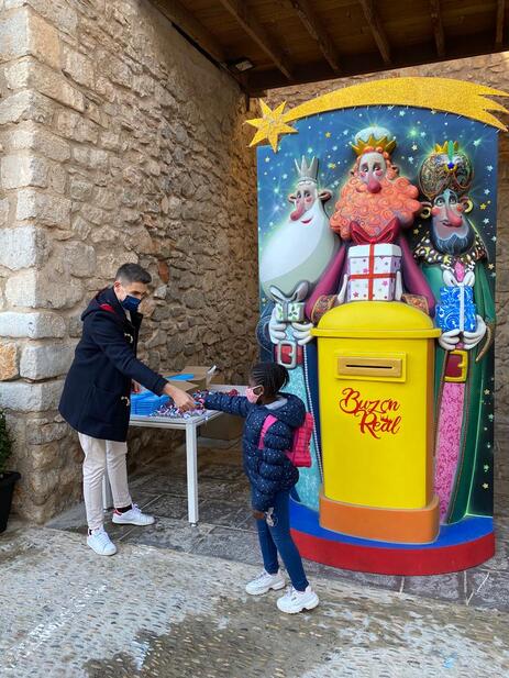 Des de la Regidoria de Cultura de l'Ajuntament de Peníscola s'ha fet lliurament, aquest matí, d'un total de 579 porta màscares als alumnes i alumnes del CEIP Jaime Sanz. El repartiment ha tingut lloc en la Bústia Reial situada en la plaça de Santa María per part del responsable de l'àrea, Ramón Simó, que ha aprofitat l'eixida prevista pels alumnes per a depositar les seues cartes per a Ses Majestats els Reis Mags d'Orient.