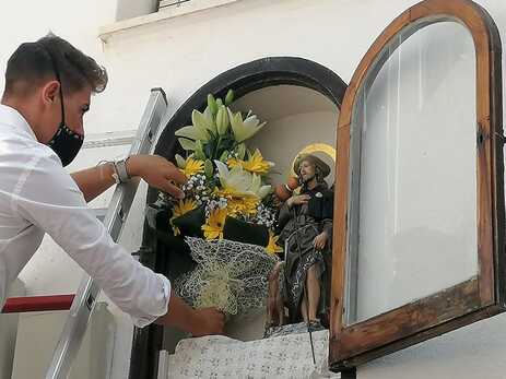 "Este año la pandemia vuelve a condicionar la celebración, pero no nuestra voluntad de recordar un día señalado como este" ha asegurado el concejal del área de festejos, Ramón Simó, quien ha depositado el ramo de flores al Patrón.