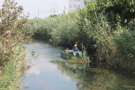 Tras haber iniciado el desbroce y poda de las mismas en el Ullal de l’Estany, durante el invierno, en agosto es el turno de las cañas que se encuentran en el recorrido de acequias del marjal.