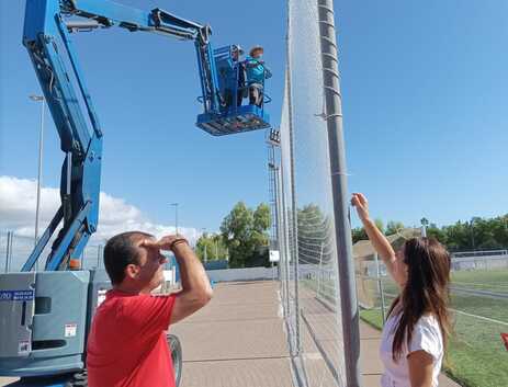 La brigada municipal de obras y servicios está llevando a cabo tareas de sustitución de las redes de las porterías del campo de fútbol, 11 en total; así como las redes de protección de salida de balones detrás de dichas porterías