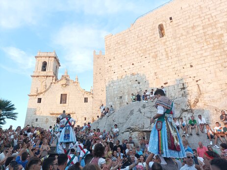 Las "danses" y la "dansa batalla" ha vuelto estos días a llenar de sentimiento y devoción la Plaza de Armas de la ciudadela de Peñíscola con motivo de la celebración de los dos días de su Patrona, la Virgen de la Ermitana.