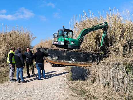 Los trabajos se realizarán hasta el 15 de marzo con la máquina retroexcavadora anfibia y con un apero de corte adaptado a un brazo extensible. Este apero permite el corte y el acopio de la vegetación al mismo tiempo.