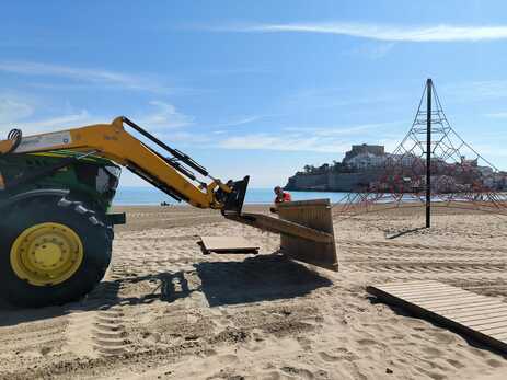 El área de Playas del Ayuntamiento de Peñíscola está coordinando las tareas de adecuación de las playas de la localidad “tareas de rutina previas a la llegada de la Semana Santa” tal y como ha explicado la concejala del área, Raquel París, tras el inicio de las tareas esta misma semana. En estos días, además de las habituales tareas de limpieza, “se han puesto en marcha las labores de adecuación de la arena, así como la colocación de las pasarelas y el mobiliario necesario para iniciar la temporada de baño”, ha explicado, destacando que esta anualidad se ha seguido invirtiendo en duchas nuevas, tal y como se comenzó haciendo el pasado año. Un total de 2,5 kilómetros de pasarelas se están colocando en distintos puntos de la Playa Norte, en su primer kilómetro y medio de bahía, perímetro que contará con vigilancia y seguridad. La caseta principal de socorrismo, ubicada junto al Punto Accesible, se está adecuando para su apertura durante estos festivos y contará con un equipo de salvamento y socorrismo formado por tres socorristas, un coordinador, un patrón de embarcación y un vehículo de transporte sanitario con dos técnicos sanitarios. El servicio de salvamento y socorrismo se activará en la posta principal, del 1 al 17 de abril La edila del área ha coordinado el desarrollo de las tareas junto a los técnicos y ha solicitado a los operarios, durante su visita de supervisión de los trabajos “una inspección detallada de todos los materiales y equipamientos, pulsadores en duchas y revisión del funcionamiento de lavapiés, cuya competencia es de Generalitat” ya que la puesta a punto no solo “permite preparar con antelación los servicios, sino también identificar aquello que es mejorable con el margen suficiente para poder reaccionar y ofrecer el mejor servicio posible, también con la vista puesta en el verano" ha asegurado.