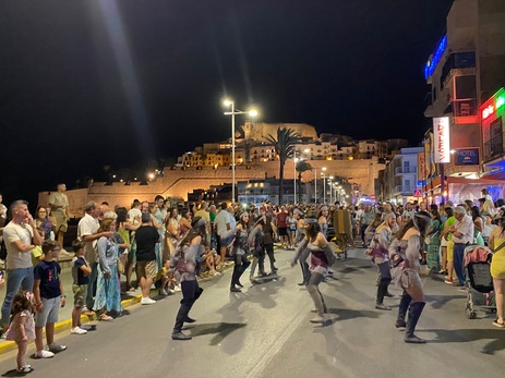 Tras su llegada y el ceremonial previsto, dio inicio un pasacalle hasta la Playa Norte, donde finalizaba el espectáculo callejero con el que, este año, Peñíscola ha rendido tributo a parte de su pasado, siempre ligado al Mar, durante el cual sus costas se vieron amenazadas por piratas reales atraídos por la singularidad de "la roca".