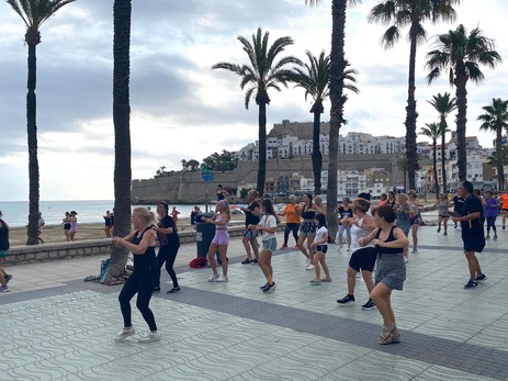 Se trata de sesiones de Zumba y Aerobic, que se llevan a cabo tanto en la zona de la oficina de información turística central, cerca de la ciudadela; como en la extensión turística de Peñismar, en la costa norte.