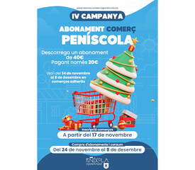 - En el programa Bonos Comercio Peñíscola cada persona empadronada en el municipio dispondrá de un máximo de 200 €, de los que paga 100 € y el Ayuntamiento de Peñíscola le subvenciona otros 100 € para poder canjear en los establecimientos participantes que se pueden consultar en este apartado de la web.
