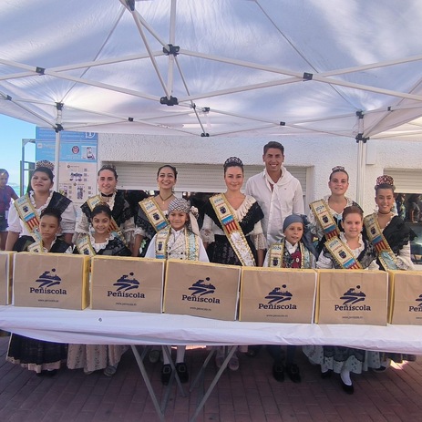 La Reina de las Fiestas Araceli Bayarri, y su Corte de Honor, han repartido esta mañana los típicos "pastissets" (más de 2000) y moscatel (10 litros), para agasajar a sus turistas, dentro de la