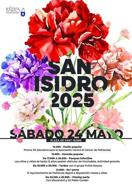 La concejalía de Fiestas del Ayuntamiento de Peñíscola está ultimando ya todos los detalles para la celebración de San Isidro, actividades que ha preparado en colaboración con el colectivo vecinal de la plaza de Sant Isidre y calle Antonio Pascual y que tendrá lugar el día 24 de mayo.