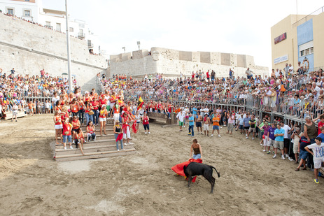 Las Amas de Casa de Peñíscola han protagonizado la jornada de hoy en las Fiestas Patronales, con el inicio de la fiesta taurina y el toreo en exclusiva de vaquillas para ellas.