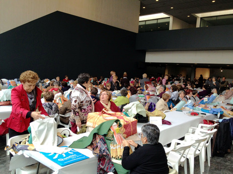 El Palacio de Congresos de Peñíscola ha acogido hoy un encuentro de más de 500 bolilleras de más de 30 pueblos de la geografía valenciana y catalana. La iniciativa, surgida desde el curso de encajes de la Universidad Popular, ha contado con el respaldo del Ayuntamiento que ha facilitado el espacio para el desarrollo de la jornada y la logística necesaria, además de el pequeño ágape que se ha ofrecido a las participantes a la hora del almuerzo.