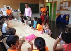 Los niños y niñas de l’Escola d’Estiu han recibido esta mañana la visita del alcalde de la ciudad, Andrés Martínez, y de la concejala de Bienestar Social, María Jesús Albiol, en las instalaciones del colegio Jaime Sanz.