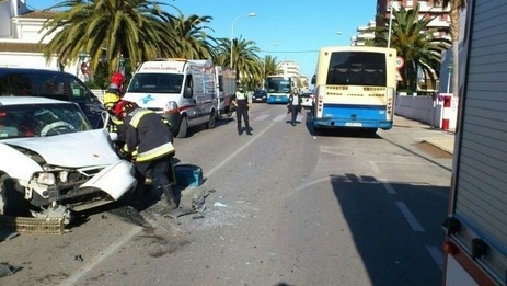 El accidente, que no ha causado daños en los ocupantes del transporte público, sí ha causado daños en la pareja de ocupantes del turismo con el traslado y la hospitalización de la mujer en el Hospital de Vinaròs.