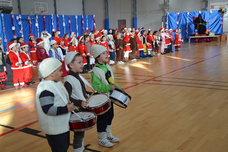 Los niños y niñas que han acudido a la cita vestidos con trajes y aderezos típicos de estas fechas, han ofrecido a los padres y madres que les han acompañado un recital de villancicos al que ha asistido parte de la corporación municipal y el alcalde de la ciudad, Andres Martínez.