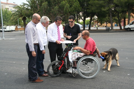 Tras la última visita a las obras de construcción del nuevo aparcamiento en el recinto del Centro de Estudios por parte del alcalde, Andrés Martínez y el edil de Urbanismo, Romualdo Forner, hace apenas unos días, los ediles han realizado hoy nuevamente una visita a las mismas acompañados por el equipo de la dirección de la obra, el arquitecto municipal y el responsable local de Cocemfe. El objetivo de la misma ha sido el de auditar la accesibilidad del recinto y tras la visita y la revisión de los accesos y planos, Álex Calvo, representante de la agrupación en la localidad, ha manifestado su felicitación al consistorio por la adaptación y accesibilidad de la nueva construcción.