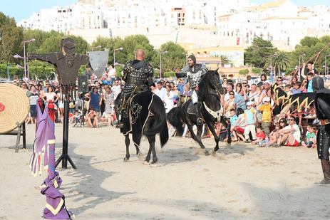Una Justa entre Caballeros llena la Playa Sur de Peñíscola en la recreación histórica de la llegada del Papa Luna a la ciudad. Este torneo medieval ha abarrotado el paseo y playa junto al puerto pesquero donde el espectáculo de caballeros ha hecho las delicias de pequeños y mayores con una puesta en escena espectacular a los pies de la fortaleza coronada por el Castillo Templario-Pontificio.