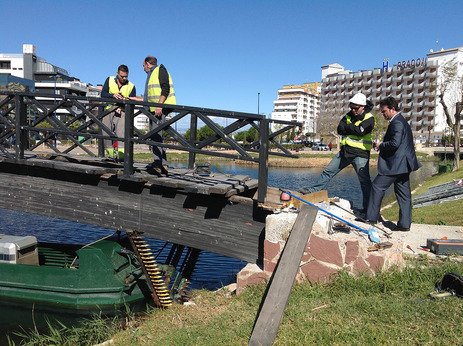 Hoy se han iniciado los trabajos de restauración del puente de madera ubicado sobre el Ullal de l’Estany, en pleno centro de la ciudad. Concretamente, la obra contempla el refuerzo de la estructura interna del puente para incrementar su rigidez y la sustitución y protección de toda la superficie de madera; además, se sustituirán los actuales accesos de obra por una nueva estructura recubierta de madera que incorporará dos rampas para garantizar su accesibilidad.