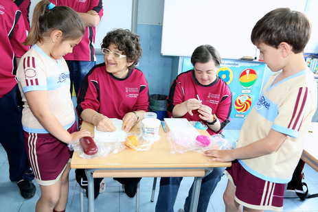 Sota el lema: Capacitats per a ensenyar, alumnes del Centre Ocupacional de Benicarló s'han desplaçat al col·legi El Peixet per ensenyar als alumnes la tècnica i el maneig de la pasta de paper