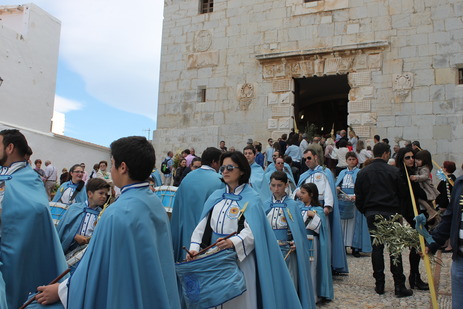 Esta mañana ha tenido lugar la primera celebración litúrgica de Semana Santa en Peñíscola. La Bendición de las Palmas, que año tras año reúne a más gente, ha comenzado en el ermitorio de la Virgen de Ermitana para continuar en la parroquia de Santa María de Peñíscola. El grupo de "Bombos i tabals" de la ciudad ha acompañado a la procesión durante este recorrido.