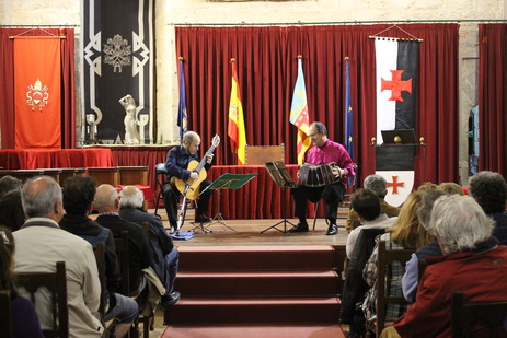 Anoche dio comienzo la XIII Edición del Festival Internacional de Guitarra de Hondarribia en el salón gótico del Castillo templario de Peñíscola. El artista español Carlos Pons volvió a fascinar al público acompañado por el argentino, Orlando di Bello, con el bandoneón. Esta noche y el sábado continúan las actuaciones, que darán comienzo a las 21h. El precio de la entrada son 5€. Las actuaciones de hoy y mañana contarán con la presencia de Andrés Tapia y el músico nacional Rubén Parejo respectivamente.